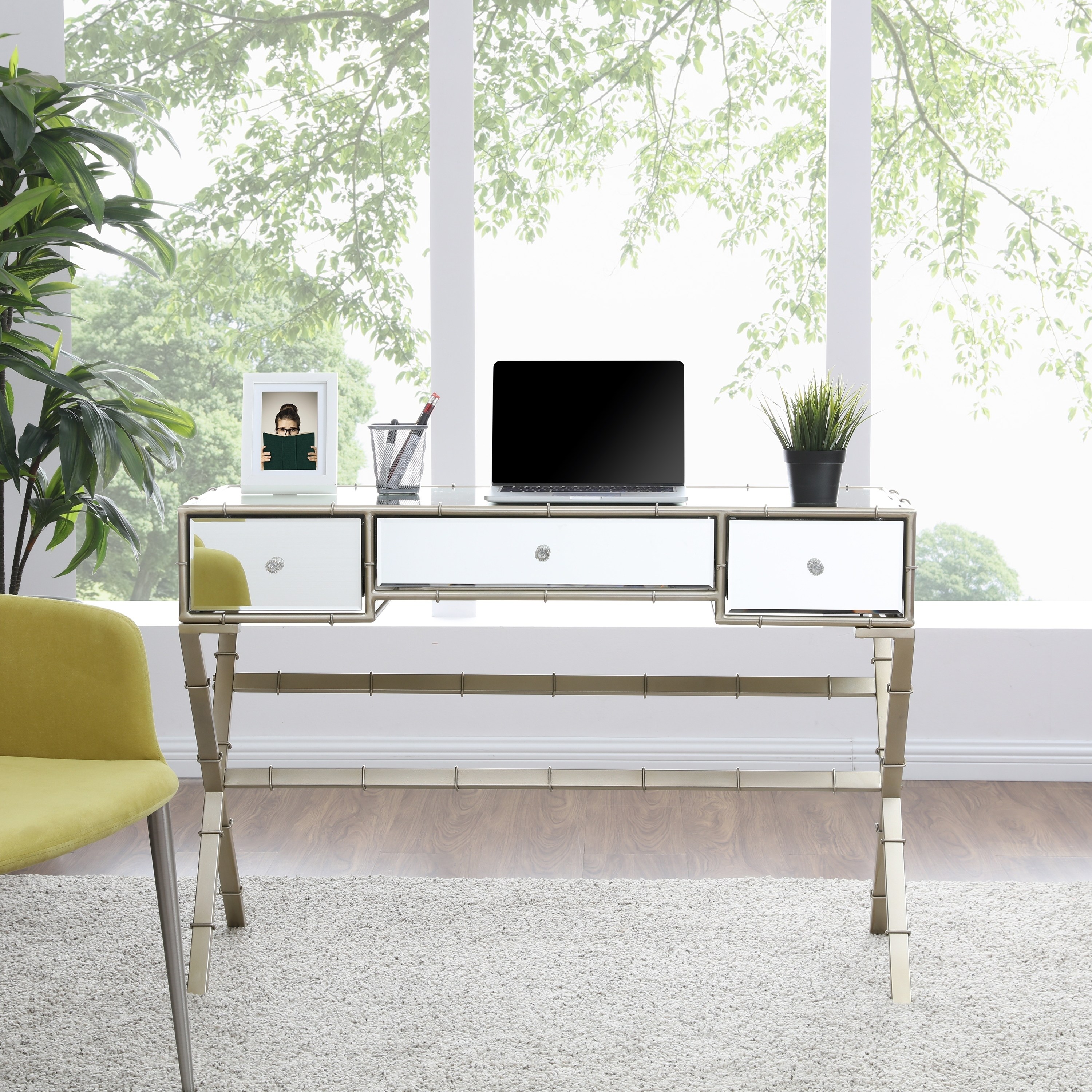 Bring light and beauty into your home with our champagne mirrored console table.